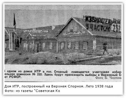Как уже говорилось выше, в 1937 году на Верхнем Спорном были построены дома для ИТР и стахановцев.