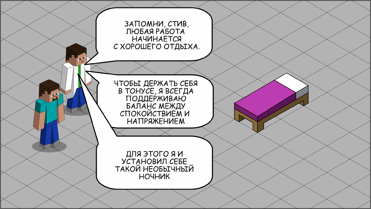 В этом выпуске все внимание достанется давнему персонажу моих комиксов: профессору Вредштейну. Он славится своим оригинальным подходом к майнкрафтовым механикам и ответственен за многие ужасающие технологичные приспособления. Сегодня он будет рассказывать своему стажеру Стиву о том, как работают некоторые его устройства. Для начала, правда, ему придется объяснить, зачем они вообще существуют. Машина для повышения уровня стресса Ночник Вредштейна (это то, что он видит, лежа на своей кровати лицом вверх): Бесполезная машина Новый способ хранения воды На сегодня все! Подписывайтесь на канал и ставьте лайки!