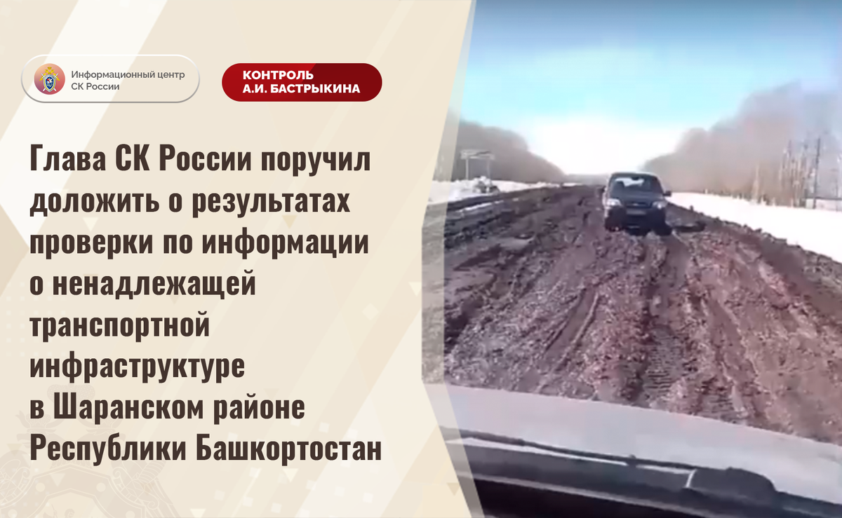 Глава СК России поручил доложить о результатах проверки по информации о ненадлежащей транспортной инфраструктуре в Шаранском районе Республики Башкортостан