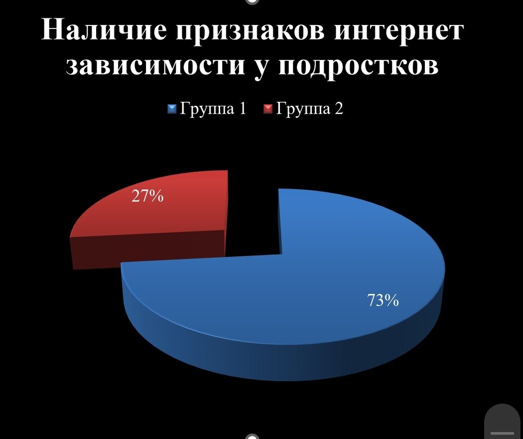 В исследовании участвовало 30 подростков из разных классов одной возрастной категории. Возраст респондентов 16-18 лет. Далее все испытуемые были поделены по результатам методики CIAS на две группы: с признаками интернет зависимости и без них (далее группа 1 и группа 2)