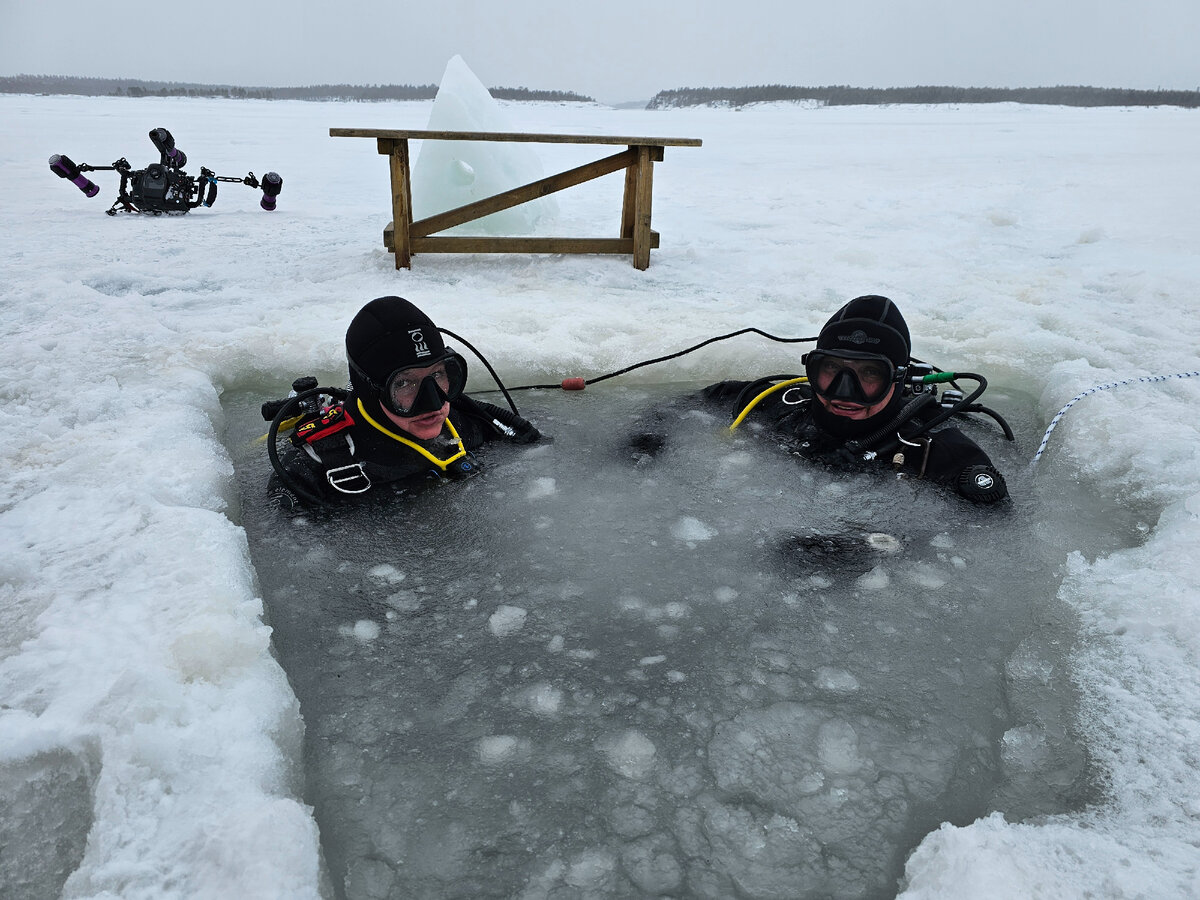 Основа успеха подледного дайвинга в плане снаряжения - 2 хороших холодноводных регулятора. И обязательно находящихся в отличном состоянии. Почему 2? При такой температуре воды очень высокая вероятность что первая ступень замерзнет и встанет в режим свободной подачи воздуха. При этом в отличие от тёплой воды в этом случае дышать из этого регулятора будет нельзя - в рот будут лететь куски льда, попадание которых в дыхательные пути крайне опасно. Поэтому при подледном дайвинге в случае свободной подачи воздуха дайверу следует оперативно переключиться на дыхание из запасного регулятора.