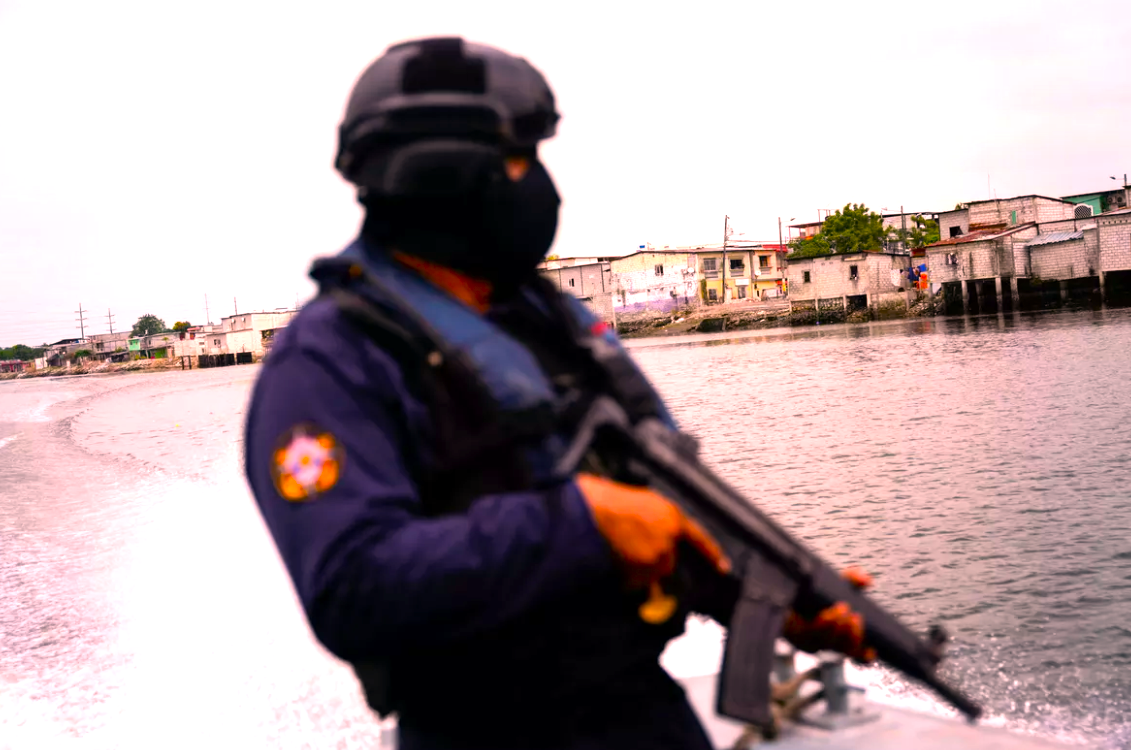 Военнослужащий ВМС Эквадора несет вахту во время речного патрулирования в Гуаякиле, Эквадор, 28 марта 2024 года. Пять эквадорских туристов были похищены и убиты на пляже Аямпе на юго-западе Эквадора после того, как их приняли за соперников нападавших, а президент Даниэль Нобоа в субботу выразил свою «солидарность с семьями». Один человек был арестован по делу, свидетельствующему о том, что торговцы наркотиками «стремятся посеять террор». «Мы не успокоимся, пока не найдем остальных», - сказал Даниэль Нобоа. По словам командира местной полиции Ричарда Вакы, в похищении участвовали в общей сложности около двадцати вооруженных людей. Среди туристической группы, прибывшей в Аямпе в четверг днем, были шестеро взрослых и пятеро детей. По словам команданте Вакы, жертвы были подвергнуты «допросам». Тела пятерых взрослых были обнаружены с огнестрельными ранениями несколько часов спустя на соседней дороге. Командир уточнил, что нападавшие «очевидно, приняли этих людей за своих противников». В