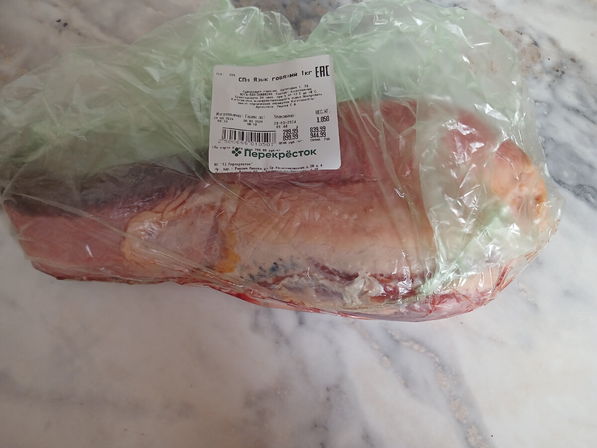 язык говяжий, привезли маленький - на 1 кг всего. Сразу убрала его в заморозку, это на день рождения мужа.