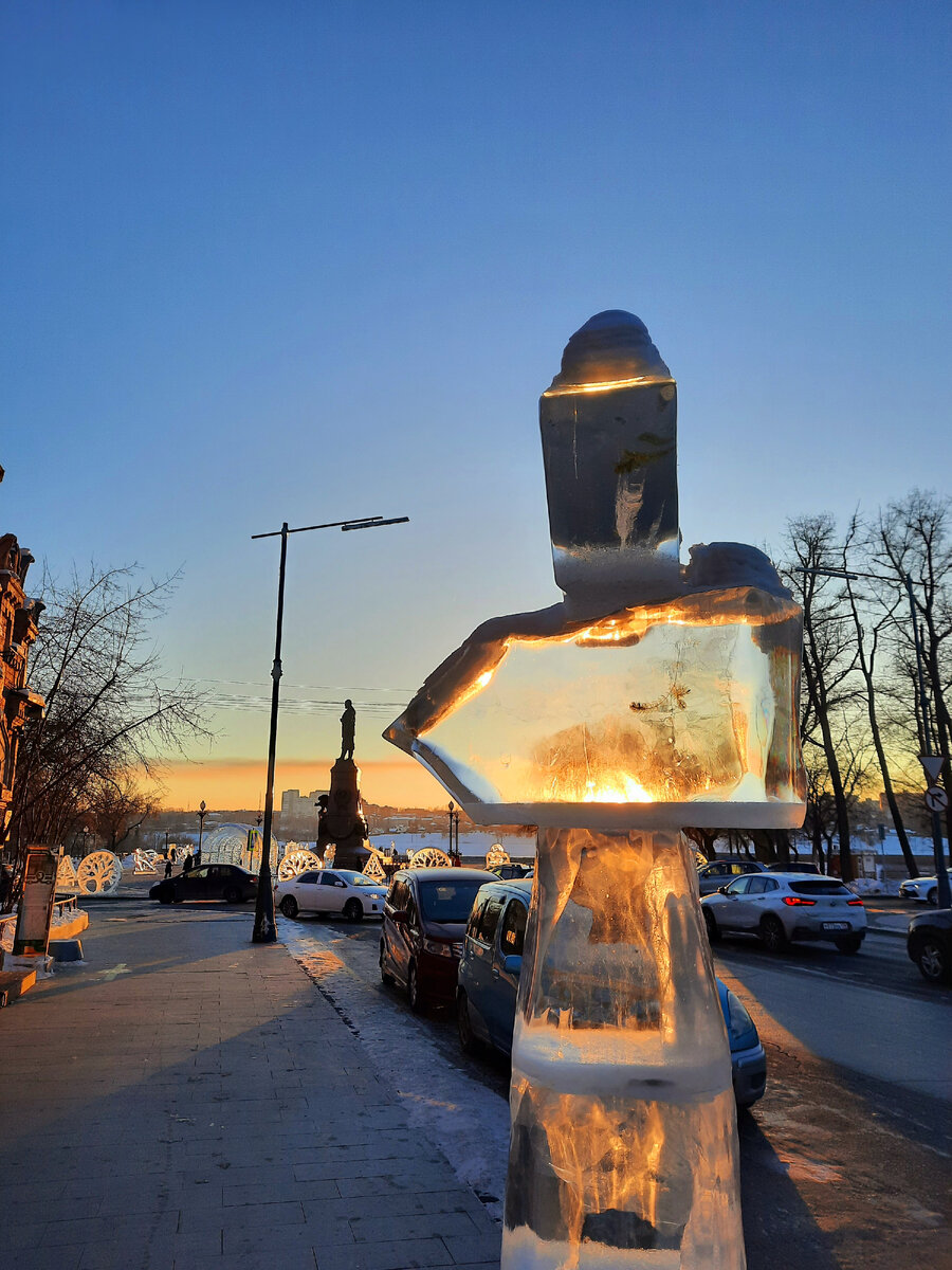 Что успеть в Иркутске за пару дней: 1. Обозреть город из иллюминатора. Главное не проспать. Аэропорт прямо в черте города явление не частое. Мы прилетали и улетали в темноте - Иркутск сиял и блистал огнями. 2. Принять солнечные ванны. Может, мне повезло, но для меня Иркутск оказался очень солнечным городом. Но есть некоторый нюанс: как только солнце заходит, уровень морозности стремительно растёт. 3. Полюбоваться на ледяные скульптуры. У нас вот прямо на улице ледяные скульптуры не водятся. А в Иркутске они, таки, везде. Самые большие количество скульптур обнаружено мной на набережной 4. Восхититься свободолюбивой Ангарой. Минус 25? Фррр, не замерзну, отстаньте. 5. Посетить красивые и очень необычные с церкви. Я успела увидеть только одну. Но, пожалуй, такой архитектуры ранее не встречала. Необычно. Впечатляюще 6. Искать наличники. Обожаю деревянную архитектуру. Как раньше умели видеть и создавать красоту. Жаль красивые дома сносят и строят... типовое и страшненькое 7. А если