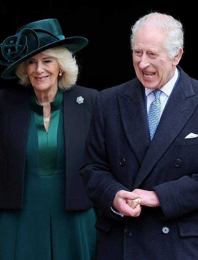 В этот день британская королевская семья каждый год собирается, чтобы посетить традиционную праздничную службу в часовне Св. Георгия. В этом году обстоятельства сильно изменились, из-за его деликатного состояния здоровья, поскольку король находится в процессе химиотерапевтического лечения, которое началось в начале февраля, Чарльз впервые появился на публичном мероприятии, что считается хорошим знаком. В прошлом году монарх шёл во главе своей семьи, на этот раз они с королевой прибыли на лимузине. Выглядел король счастливым и спокойным. Внутри церкви, Чарльз с Камиллой сели отдельно, оба были удалены от остальных членов семьи, которые их сопровождали, из-за риска любого возможного заражения. Правда, на улице это не мешало королю пожимать руки посторонним людям и общаться с собравшимися поклонниками, один из которых пожелал: "никогда не сдавайтесь". Камилла просто расцвела, в чёрном жакете-накидке, украшенном брошью с изумрудами, сапфирами и бриллиантами из королевской шкатулки, изумру