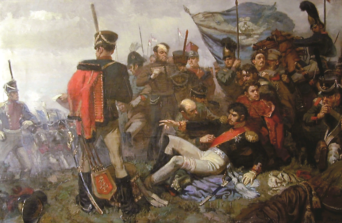 Об авторе этого живописного полотна сведения настолько скудны, что остаётся только поражаться: как быстро забывается прошлое, совсем недавнее. Вепхвадзе - династия художников, четыре поколения! Иван, Алексей, Джованни, Бруно, Наталья... Картина, которая не может не привлечь внимания, написана Алексеем Ивановичем в 1948 году, в качестве дипломной, в Ленинградской Академии художеств. Оценка - отлично. Название громоздкое, зато вполне объясняющее сюжет: "Смертельное ранение генерала Багратиона на Бородинском поле". Так если признание, одобрение, диплом получены, можно обратиться к другим темам? Художник так и сделал, но очевидно, преследовало его чувство незавершенности, недосказанности. Понятно, что князь ни на минуту не сомневается в победе, но к кому обращён его призыв? В левом углу, судя по эполетам, полковник, но что он может расслышать на таком расстоянии? Ему передают бумагу? Кто и когда успел её написать? Передаёт гусар Ахтырского полка, которого и близко не было - это уже заме