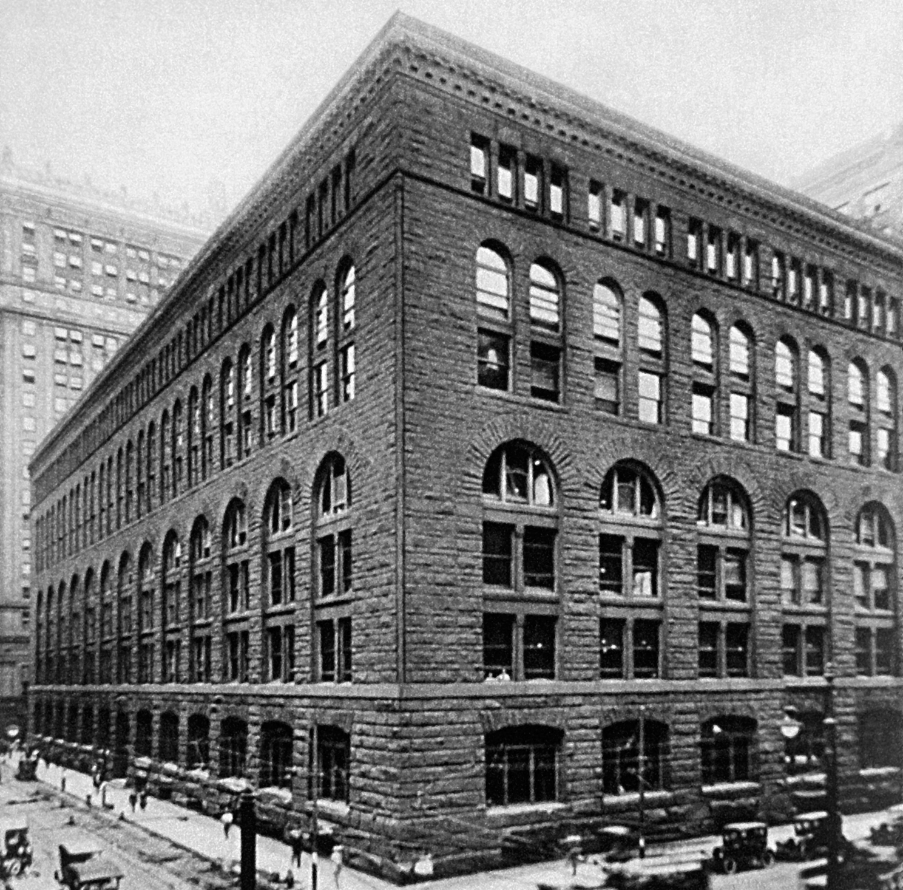Это здание принадлежит старейшей сети универмагов в США "Маршалл Филд энд Компани". Сначала это была небольшая компания, которая торговала хозтоварами, по типу советских универмагов "1000 мелочей". В её магазинчиках можно было найти всё: от спичек с утюгами и до фургона для переезда в другой конец страны. Бизнес шёл настолько хорошо, что со временем сеть этих магазинов охватила всю страну.