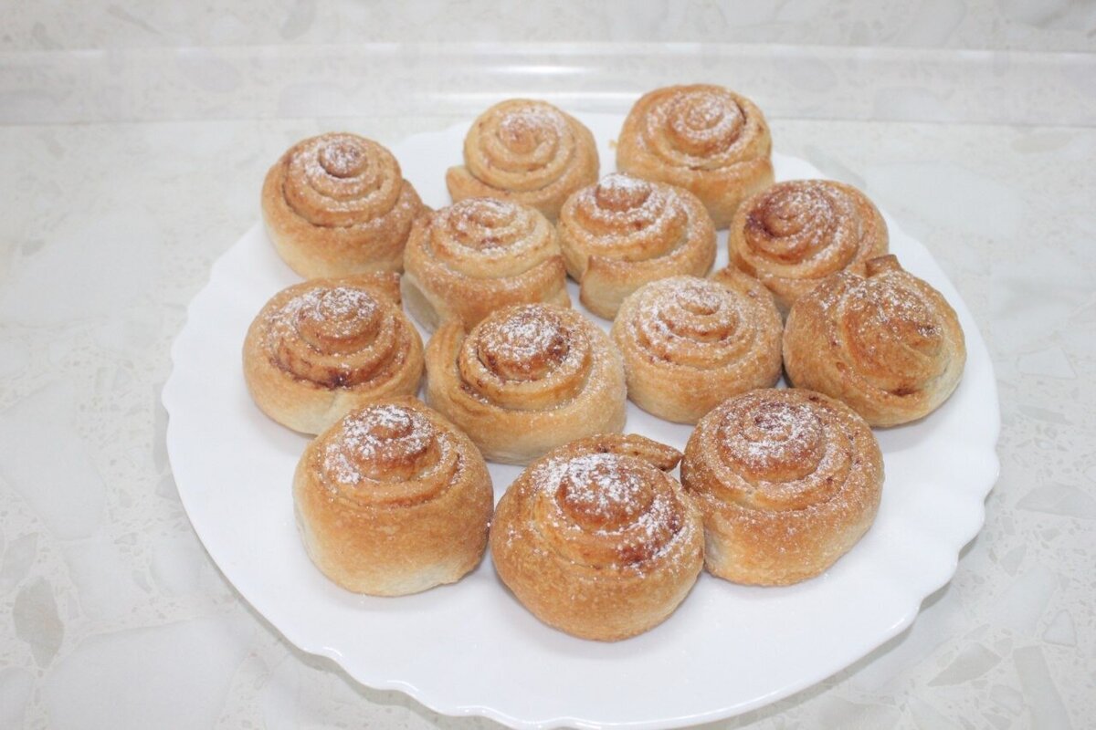 Ингредиенты: 500 грамм слоеного теста (пачка) Пачка корицы (15-20 грамм) в идеале свежемолотая Сахар 50-70 грамм сливочного масла Способ приготовления Шаг 1 Тесто заранее достаньте из морозилки, чтобы оно разморозилось. Затем, тонко раскатайте тесто. Растопите сливочное масло и смажьте им раскатанное тесто, посыпьте его сахаром и корицей. Шаг 2 Сверните листы теста рулетиком. Если время позволяет, отправьте его на 20 минут в холодильник. Но можно запекать и так. Шаг 3 Разделите рулет на равные части и выложите на противень, застеленную пергаментом. Выпекайте в разогретой до 190 градусов духовке 15-20 минут. P.S. Можно полить сгущенкой, вареньем или собственоручно сделанным кремом. Приятного аппетита😘 👉🏼 Больше видеорецептов смотрите на Ютуб канале