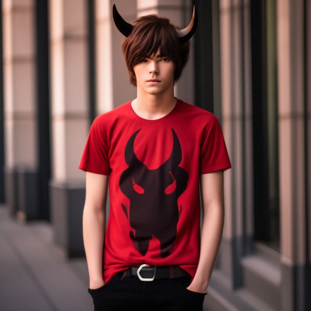 Позади сидел мужчина, скрестив ноги. Язвительная ухмылка украшала его слегка бледное лицо. Из-под растрёпанных каштановых волос выглядывали два бордовых рога. Красная, будто домашняя футболка и чёрные спортивные брюки также не давали и намёка на то, что это и есть тот самый демон, которого так боялись девочки.