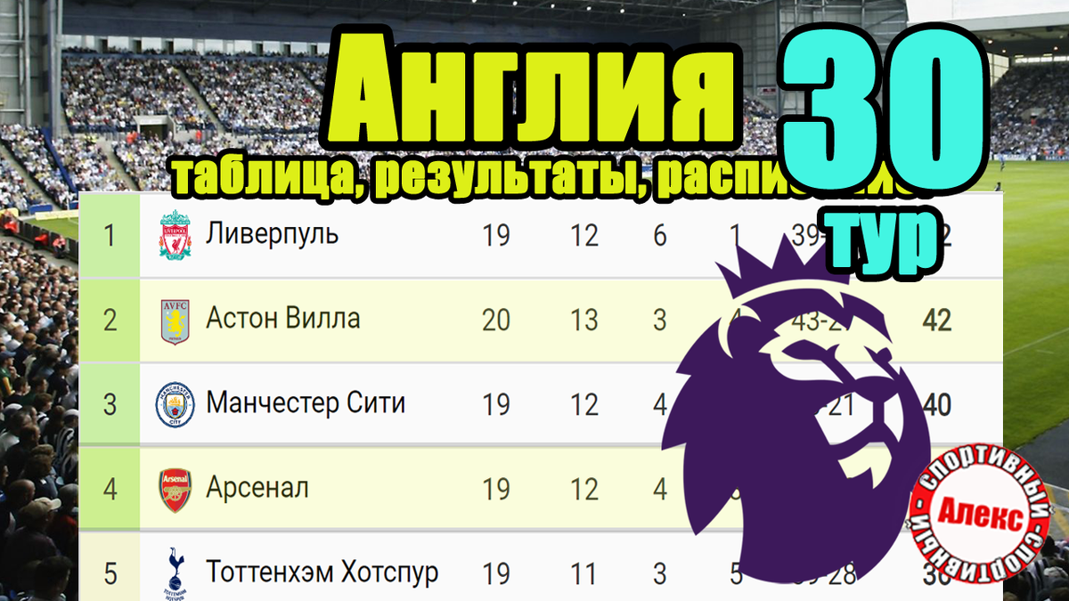 Манчестер Сити – Арсенал. Чемпионат Англии (АПЛ) 30 тур. Результаты, расписание, таблица.