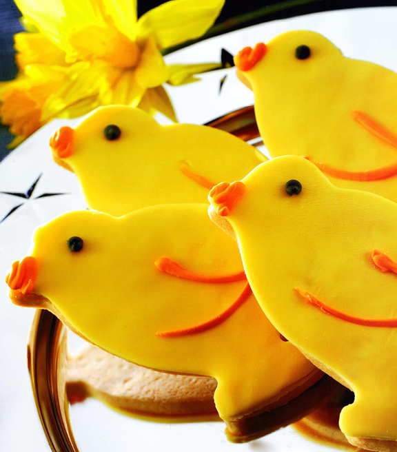 Это чудесное печенье вызовет улыбку на лице любого малыша, к тому же ребятишек можно привлечь к украшению выпечки. Используйте форму для печенья в виде цыпленка, нарисованную на этой странице. ПРИМЕРНО НА 20 штук