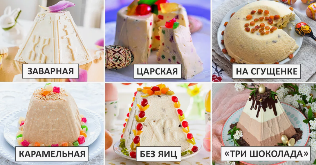 Обязательным пасхальным блюдом является пасха — блюдо из творога с большим количеством сливочного масла и сахара, спрессованное в виде усеченной пирамиды. На боковых сторонах пасхи изображается крест и буквы «ХВ» (Христос Воскресе). Творожная пасха символизирует собой Гроб Господень и замещает на праздничном столе ветхозаветного пасхального агнца. Пасха бывает трех видов: сырая (готовят прессованием творога без дальнейшей тепловой обработки), вареная (на пару) и запеченная в духовке. Сырые пасхи больше распространены из-за того, что готовить их гораздо проще, чем вареные и запеченные.