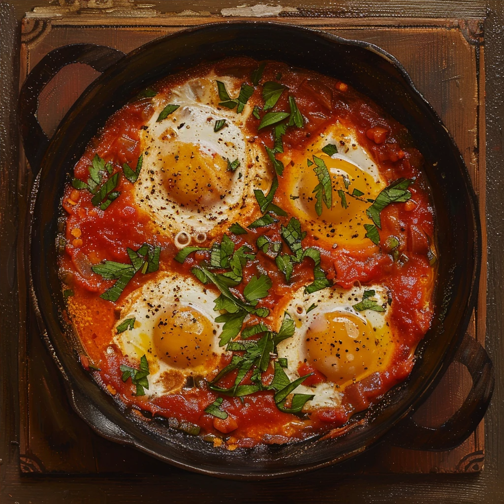 Шакшука - это традиционное североафриканское блюдо, которое представляет собой яйца, приготовленные в томатном соусе со специями. Его происхождение восходит к временам Османской империи, и оно стало популярным во многих странах Ближнего Востока и Средиземноморья. Шакшука готовится из яиц, сваренных в томатном соусе, приправленном различными специями, такими как паприка, зира, кориандр и острый перец. Блюдо обычно подается в чугунной сковороде или глиняной посуде, в которой оно готовится. Шакшука - это сытное и ароматное блюдо, которое идеально подходит для завтрака, обеда или ужина. Его часто подают с хлебом, лепешками или рисом. Шакшука также является популярным уличным блюдом и часто продается в киосках и на рынках. Попробуйте классическую шакшуку и ощутите ее яркий вкус и аромат! Ингредиенты: Приготовление: Наслаждайтесь классическим вкусом шакшуки! Приятного аппетита!