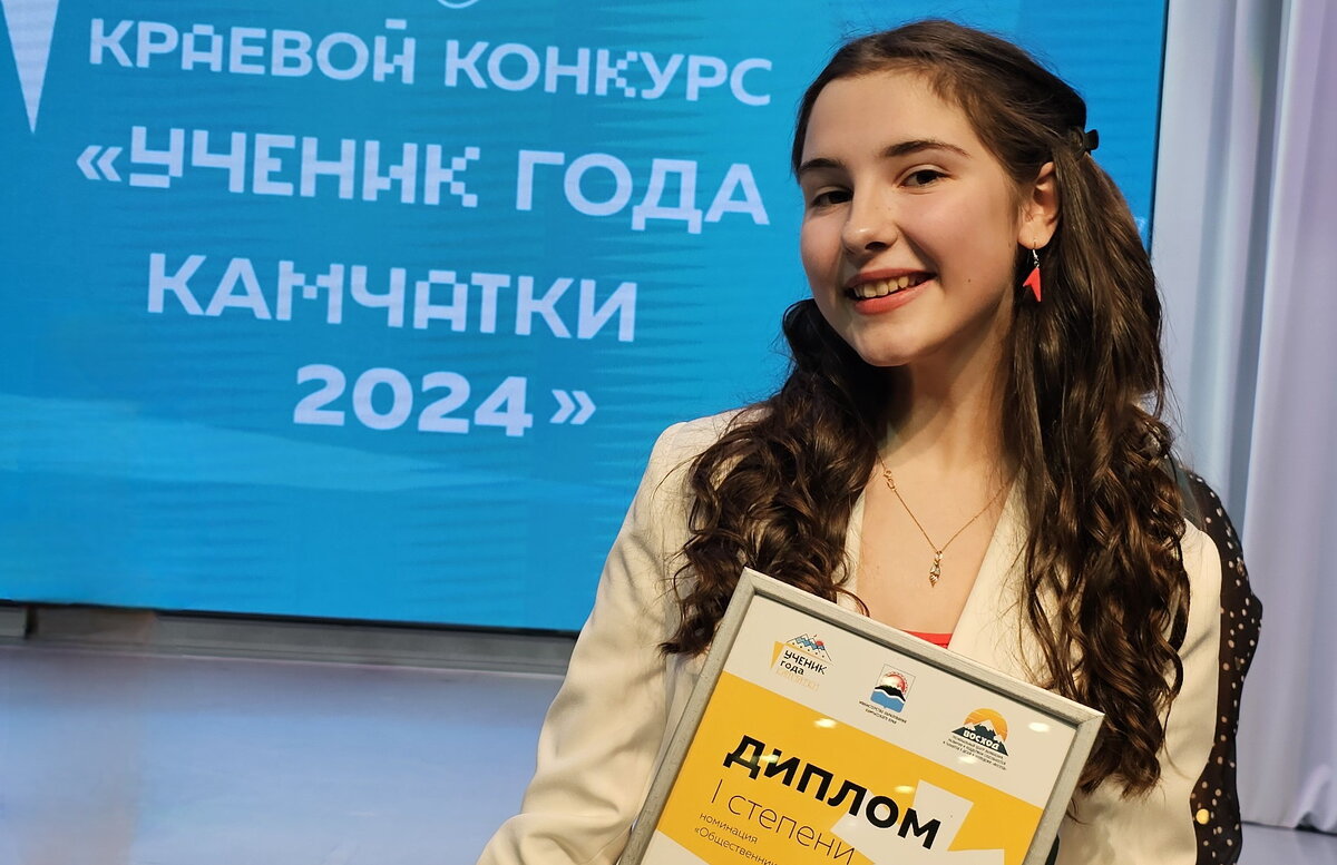 Десятиклассница ЕСШ №7 Анастасия Лисюченко одержала победу на региональном этапе Всероссийского конкурса «Ученик года – 2024» – в номинации «Общественник года». На протяжении последней недели марта испытания конкурса проходили 14 старшеклассников из числа победителей заочного регионального этапа. Согласно правилам, ребята подали заявки на конкурс в определённой номинации, например, «Доброволец года» или «Интеллект года». А вот абсолютного победителя конкурса жюри региона не определяет. Церемония закрытия конкурса и награждения победителей состоялась в Петропавловске-Камчатском 29 марта. В списке лучших из лучших – пять человек: «Доброволец года» – девятиклассница школы № 4 п. Ключи Усть-Камчатского района Софья Миронова, «Патриот года» – девятиклассник школы № 9 г. Вилючинска Егор Суслов, «Интеллект года» – ученица 10-го класса школы № 1 г. Вилючинска Валерия Семенова. В номинации «Общественник года» высшую ступеньку пьедестала поделили десятиклассник школы № 28 ПКГО Ярослав Мазур и уч