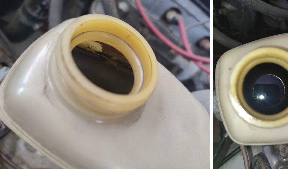 Считается, что на машинах тех лет, более 25-30 лет назад, использовалась резина, которая под воздействием гликолевых жидкостей может испортиться, что может привезти к повторной переборке тормозной системы.