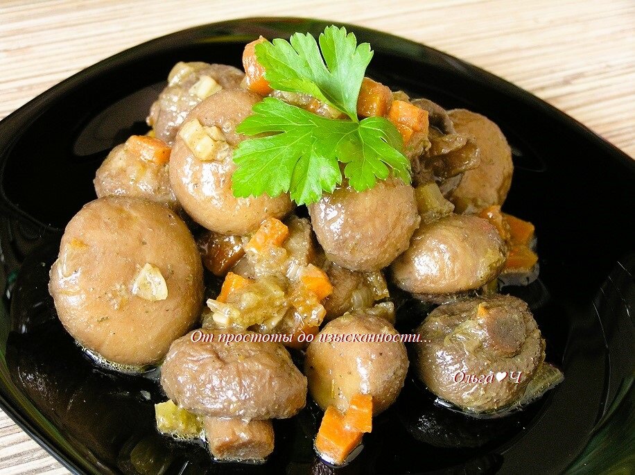 Всем доброго дня! Закуска хороша как в горячем так и в холодном виде. Рецепт прост, но очень вкусен! Подходит для дней поста, когда есть разрешение на вино и елей. Попробуйте! Ингредиенты: 300 г целых небольших грибов