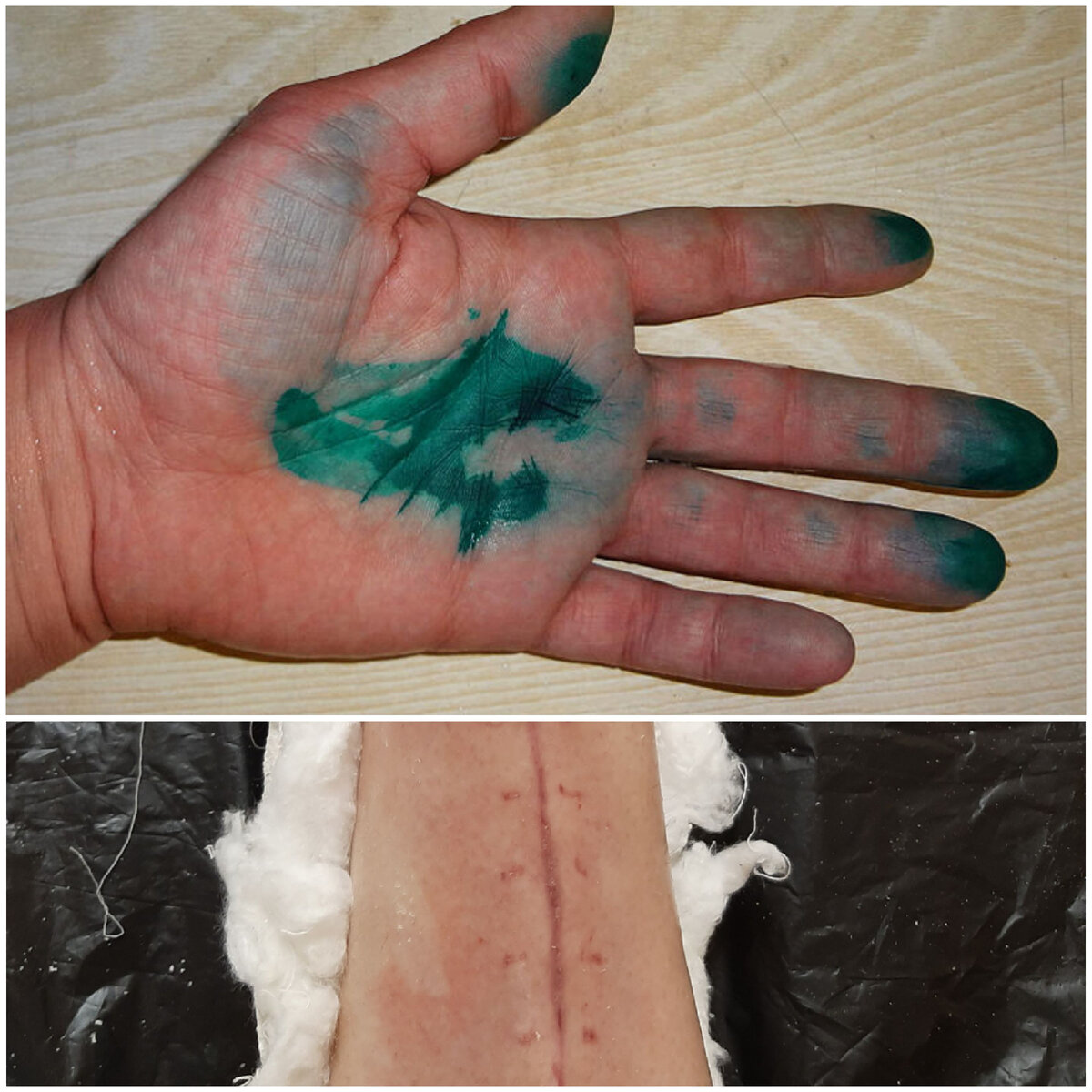 Что было со мной после использования зеленки в качестве антисептика при обработке шва. Уход за швом после операции по установке пластины явно заслуживает отдельной статьи. При выписке из больницы мне сказали, что швы можно обрабатывать дома, через день, тем что есть (зеленка, йод, спиртовой раствор и т.д.) У меня в домашней аптечке из всего перечисленного была только зеленка, ей мы и обрабатывали швы до снятия. Ни в коем случае не делайте, как мы- не используйте зеленку. В результате домашней обработки мы сожгли всю кожу зеленкой вокруг шва. Обработку проводили тщательно и в результате наших стараний всё слилось и стало одним цветом. В одном месте шов не заживал, немного мокнул. И именно это место мы мазали зеленкой качественнее. При этом я не ощущала, что кожа повреждается. На 14 день после операции я поехала в больницу снимать швы, ещё не зная, что мне предстоит очередное испытание. Врач был поражен нашей старательностью и итоговым результатом. Нитки стали тоже зелеными