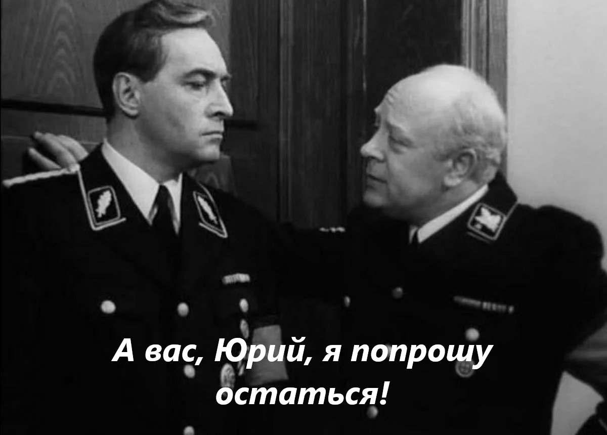 "А вас, Штирлиц, попрошу остаться!" - почему-то промелькнуло у меня в голове и захотелось заржать, но я напустил на себя серьезный и озабоченный вид.