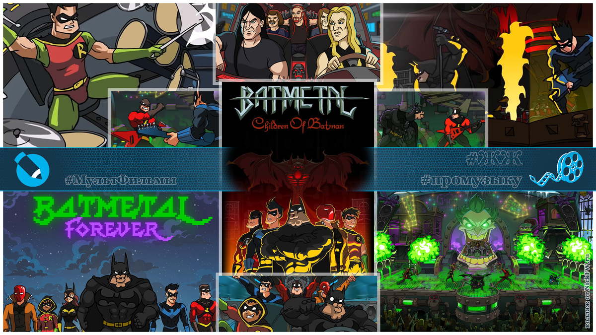 Пост об этих музыкальных мультах я специально придержал к 1 апреля, ибо... BatMetal — пародийный анимационный проект про жирного брутального Бэтмена, с отсылками к другим фильмам, мультфильмам, играм... и сопровождающийся метал-музыкой, заимствованной из мультсериала Металлопокалипсис... Всего в проекте, с 1 июля 2014 года, появилось 3 музыкальных видео и несколько коротких сюжетов между ними, а так же пара роликов показывающих процесс создания анимации. В публикацию я встраиваю только первый мультфильм, так как второй и третий, изобилуют сценами в которых можно увидеть эротику, а так же «кровь, кишки, мозги», конечно же анимационные, но всё же... ... от того ютубом рейтинг роликам присвоен 18+, и их нельзя встраивать куда-то, а смотреть можно только там... потому дам ссылки: «BATMETAL RETURNS», «BATMETAL FOREVER»... И да... я как то писал про мультипликационный сериал «Семья металлистов», так вот Дмитрий Вдовенко, один из создателей MetalFamily приложил руку и к рисованию БэтМетала...