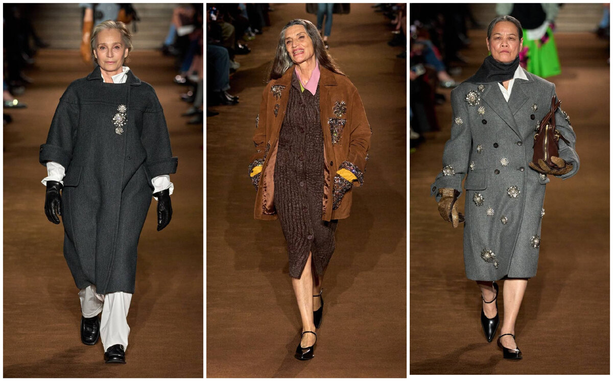 На чем основано это утверждение? «С 2020 по 2030 г. доля людей старше 60 лет в структуре мирового населения увеличится на 34%. Численность людей в возрасте 60 лет и старше уже превышает количество детей младше 5 лет. К 2050 г. людей в возрасте 60 лет и старше будет больше, чем подростков и молодых людей в возрастной группе 15–24 лет» - информация Всемирной организации здравоохранения. Увеличение количества пожилых людей неизбежно ведет к перестройке экономик стран мира и их адаптации к новым реалиям. Легкая промышленность во многих странах уже перестраивается на производство товаров для пожилых, на подиумах модных брендов появились возрастные манекенщицы. Вот пример. Музой модного бренда «Miu Miu» всегда была подчёркнуто юная девушка. Пару недель назад я наблюдала первое шоу «Miu Miu», в котором участвовали взрослые женщины: Первым таким агентством в России стала «Олдушка». Вот его ведущие модели: В последние годы в агентстве «Олдушка» работает небольшая, но очень специфическая группа