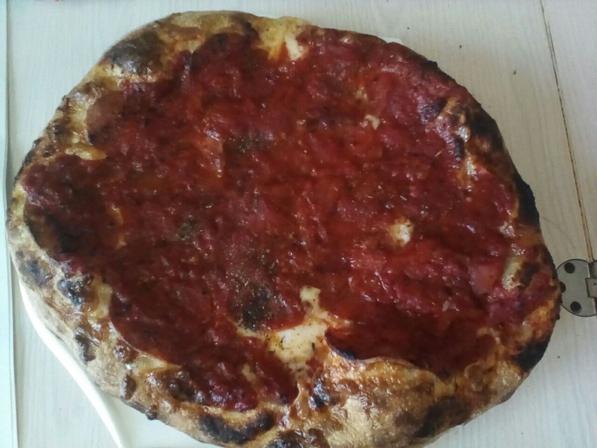 Рецепт рассчитан на 3 пиццы по 25-35 см. Для теста: Для соуса на 3 пиццы: Для начинки на 3 пиццы: Приготовление: Делаем соус: Делаем тесто: В день приготовления пиццы: Мои заметки: Пицца в стиле Нью-Джерси отличается от Нью-Йоркской тем, что соус кладут сверху, поэтому его по желанию можно сделать более жидким. Соус сверху дает пицце защиту от намокания. Источники: