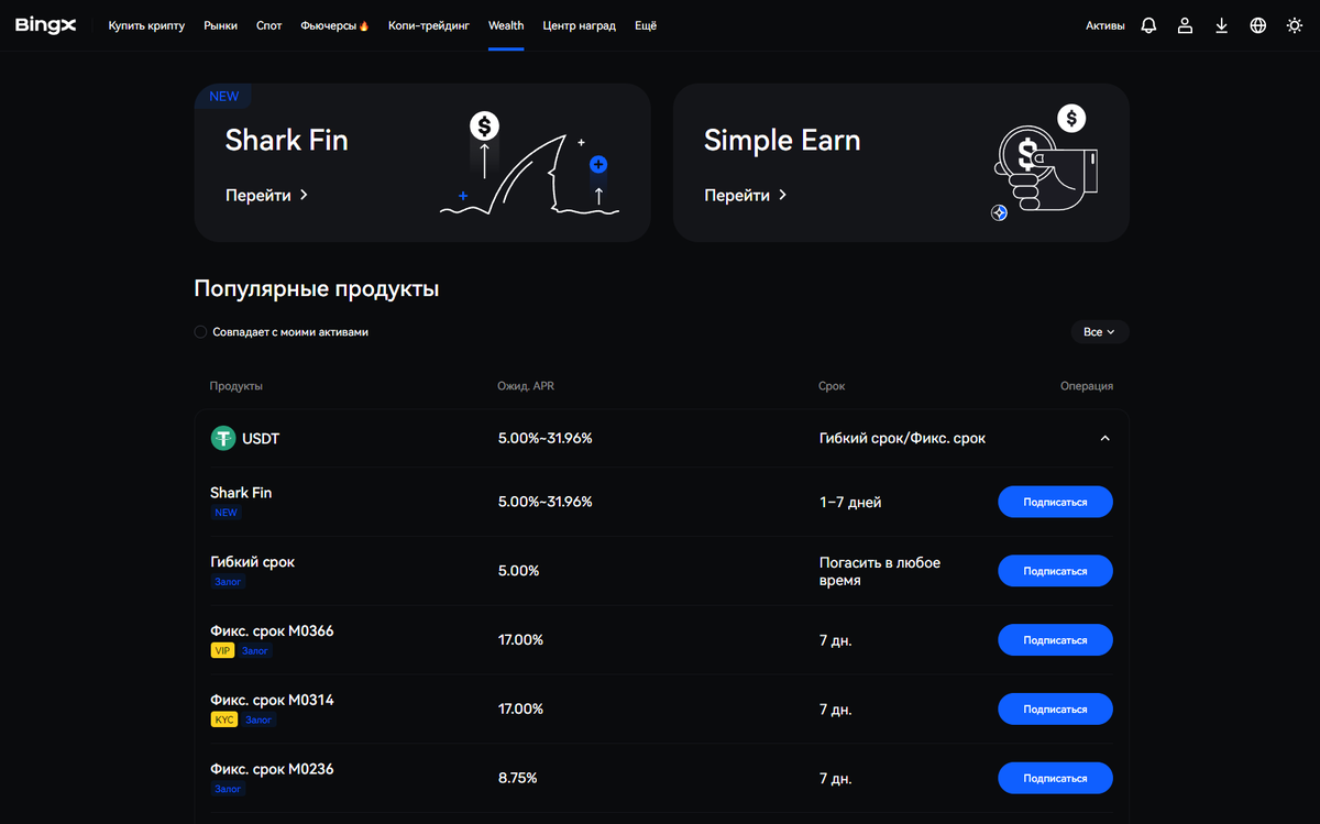 Продуктовая линейка BingX Wealth Management включает два основных типа депозитов: