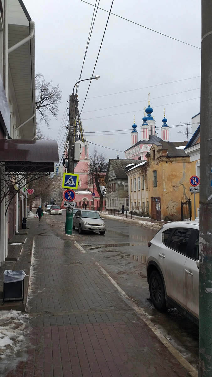 Калуга была основана около 1371 года. В городе сохранилось огромное множество архитектурных памятников 18-19 веков и в целом центр города являеется классическим примером небольших провинциальных городков на закате царской России. На мой взгляд, у Калуги есть огромный потенциал для развития туристической инфраструктуры при должном стремлении властей. К сожалению, на данный момент в центре города полно разрухи, что очень негативно отражается на его внешнем виде. Я был в Калуге дважды и оба раза в начале марта. Ранней весной большинство российских городов выглядит как готовая иллюстрация к слову тоска. Низкое серое небо, грязь и мусор, разбитые дороги утонувшие в лужах, кучи снега в парках и на улицах, которые никто и не думал вывозить и все это на фоне облезлых домов- надо быть, действительно, очень большим любителем российской действительности, чтобы получить удовольствие от прогулки по такой местности. Пожалуй, самым интересным и необычным зданием в Калуге является Церковь Космы и