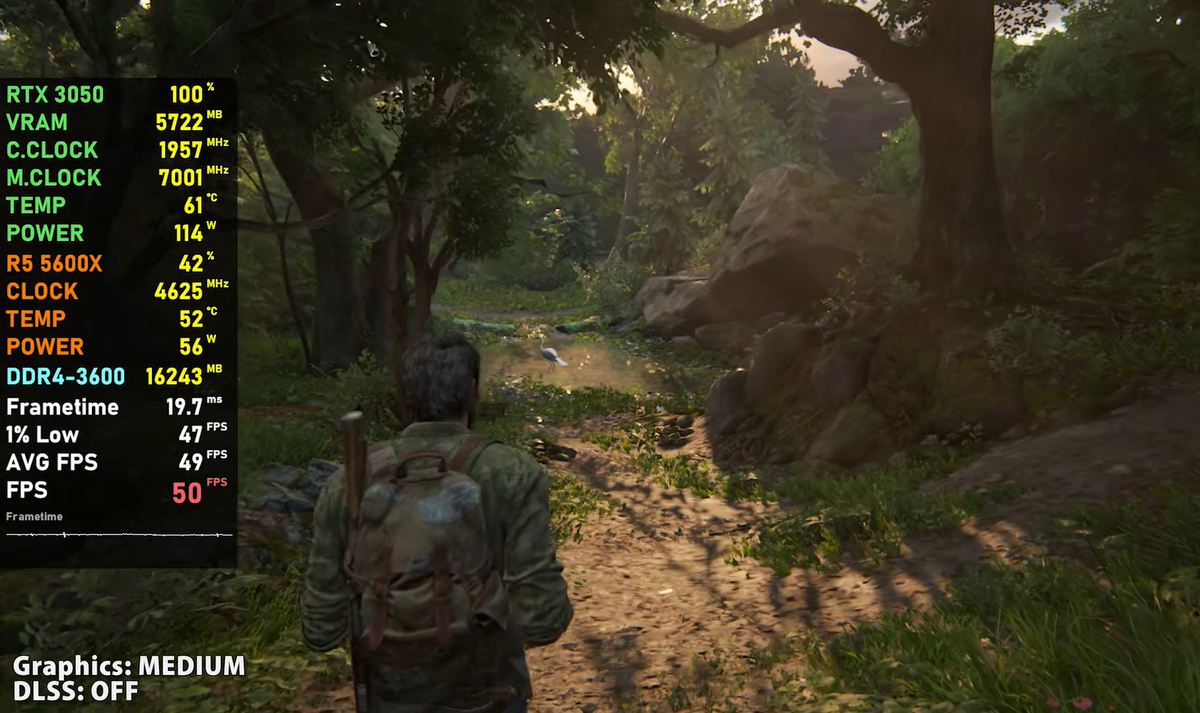 На YouTube-канале BENCHMARKS FOR GAMERS узнали, какой средней производительности стоит ожидать от сборки с RTX 3050 и Ryzen 5 5600X в Full HD. Horizon Forbidden West запускалась с графикой Medium, DLSS Quality. Средняя частота кадров в этой игре составляла 69 к/с. В игре Alan Wake 2 с низким пресетом, RT Off, DLSS Quality средняя производительность находилась на уровне 47 к/с. The Last of Us Part 1 шла с DLSS Off, настройками графики Medium. Средний FPS в этой игре находился на уровне 52 к/с. В Cyberpunk 2077 удалось с графикой Medium, DLSS и RT Off получить в среднем 57 к/с. Hogwarts Legacy тестировалась с настройками графики Medium, DLSS и RT Off. Средняя частота кадров в этой игре находилась в районе 69 к/с. Эти и другие результаты тестирования вы можете увидеть на видео ниже. Вывод В среднем производительность в 1080p во всех протестированных играх у RTX 3050 составляла около 68 к/с. Тестовый стенд: - видеокарта Zotac RTX 3050 Twin Edge OC 8GB; - процессор AMD Ryzen 5 5600X; - мате