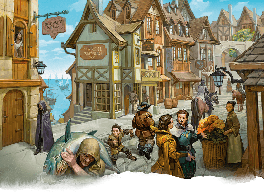 В Северном районе тоже хватает благородных, но атмосфера этого района более спокойная, чем у Приморского района. Тут хватает таверн и лавок на любой вкус, но по темпераменту этот район более сдержанный и вежливый. Вдоль большинства улиц стоят рядами домики процветающих предпринимателей, инвесторов и городских служащих. Все они достаточно состоятельны (или пытаются выглядеть состоятельными), чтобы нанять пару слуг.
