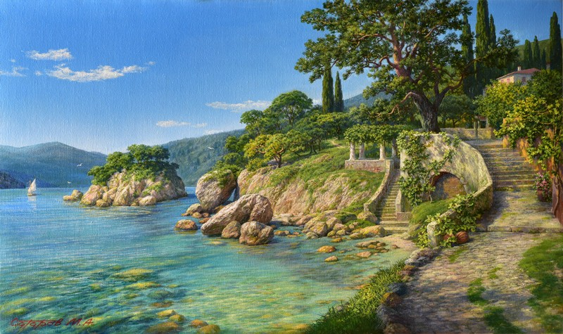 Продолжу знакомить с творчеством художника Михаила Сатарова. Художник работает в следующих жанрах и темах: "Старая Москва", "Венеция", "Марины", "Портреты", "Натюрморты", "Пейзаж" и "Фэнтэзи". В пятой части у нас будут "Марины". Для тех, кто не в курсе, что это такое поясню, что это особый вид пейзажа, картина, на которых изображаются морские виды. 1. "Солнечная Ривьера". 2. "Замок у моря". 3. "Ночь на море". 4. "Лазурный берег". 5. "Вечер на море (версия 2)". 6. "Крымский вечер". 7. "Тихое утро (версия 2)". 8. "Капитан и куртизанка". 9. "Крым (версия 2)". 10. "Бриз (версия 2)". 11. "Шторм (версия 2)". 12. "Закат на о. Комо". 13. "Изумрудная волна (версия 2)". 14. "Южная ночь (версия 1)". 15. "Бухта Надежды". 16. "Азовское море". 17. "Восход". 18. "Грот с кипарисами". 19. "Закат". 20. "Зеленая волна". 21. "Золотые паруса (версия 1)". 22. "Лодки". 23. "Лунная ночь". 24. "Морской ветер (версия 1)". 25. "Морской грот". 26. "Морской туман". 27. "Морской утес". 28. "Навстречу ветрам". 29. "