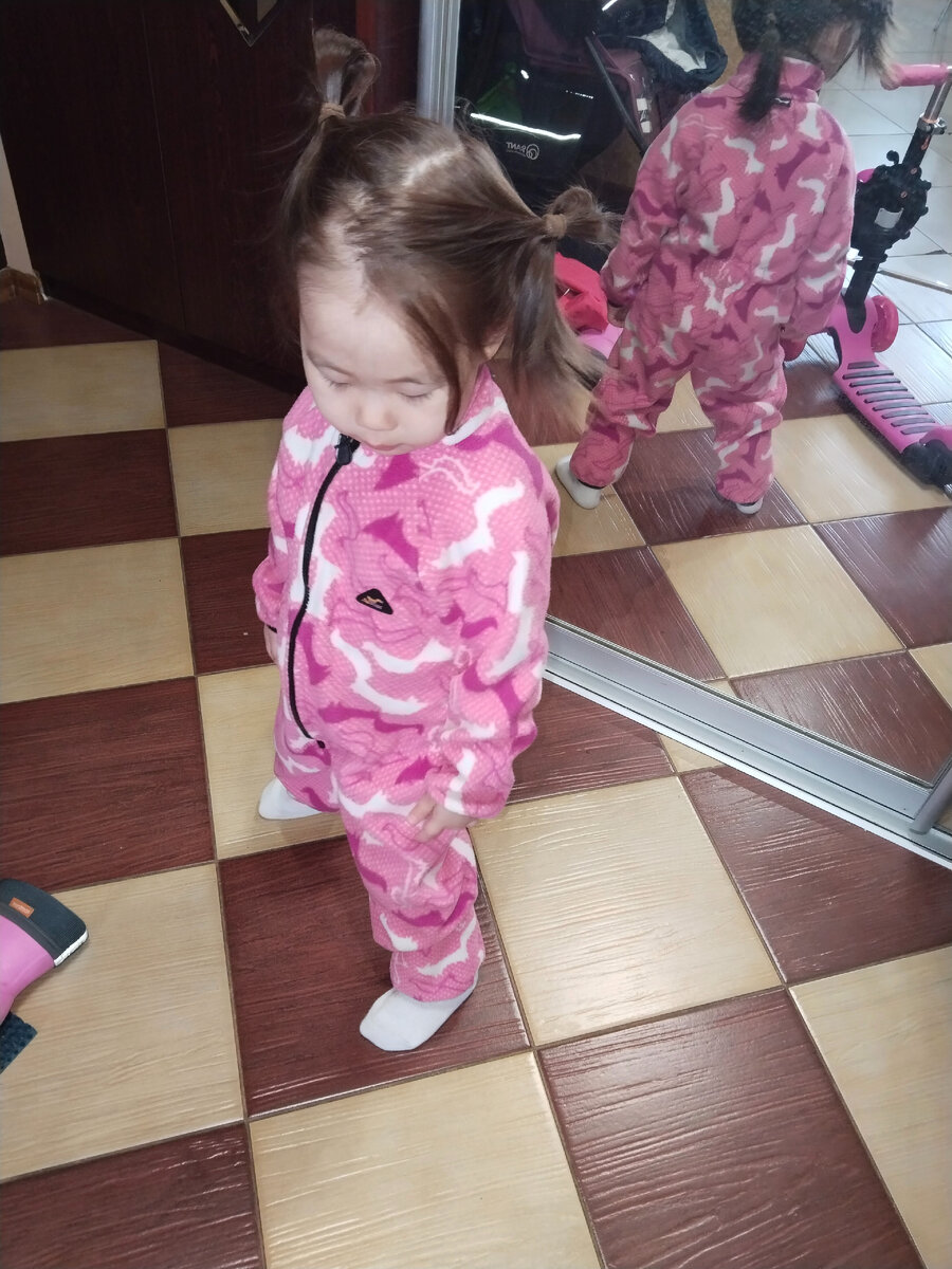 Гулять мы любим.На прогулку ходим в любую погоду. В основном 2 раза в день.В первой половине дня гуляю с дочкой я .Вечером муж.Если не уехал в командировку .На канале даже есть подборка "Наши прогулки". Зимний комбинезон убрали недели 2 назад . Снег стал рыхлым.Когда ходишь, проваливаешься в него.И чтобы легче Мади ходить. Надели теплую куртку+полукомбинезон. А сегодня уже плюс 4 . Рискнула надеть комбинезон из софтшелла.Хотя обычно его носят от 5 градусов тепла. Внизу флисовая поддева.Под ней футболка и колготки. Софтшелл - это комбинация двух слоев, склеенных или спаянных вместе. Внешний слой может быть обработан мембранной водоотталкивающей пропиткой или просто служить ветрозащитой, в то время как внутренний слой является флисом.Он идеально подходит для прохладной, дождливой или ветреной погоды. Покупала я его на Авито.В отличном состоянии.В районе 1 тыс.Фирма Small. На размер больше ,чем нужно.Но за счёт подворотов носим уже второй или даже третий сезон. Он обладает мягкостью, легк