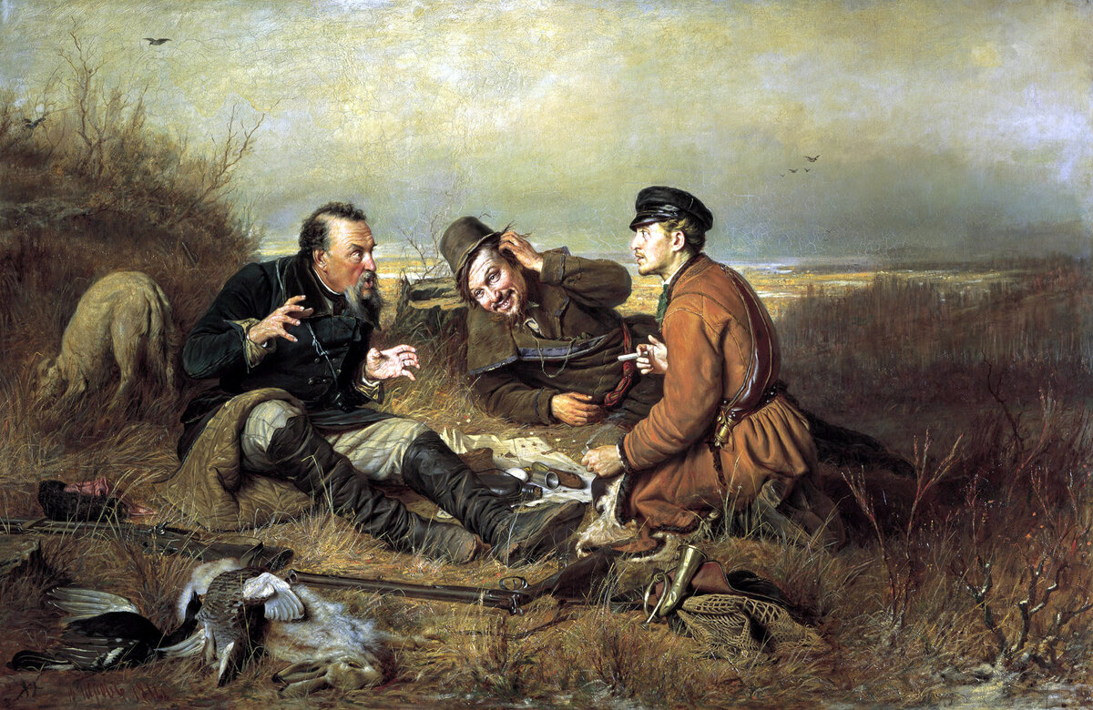 Ох и страху я сегодня натерпелся, никогда такого не видывал. Сегодня раненько утром на зорьке отправились мы с вами на утиную охоту. Ну, как водится, разошлись по своим позициям, чтоб не мешать друг другу. Настрелял уток и пошёл вас искать. Иду и слышу - ветки трещат. Какой-то зверь пробирается и громко сопит. Ну, думаю, не иначе как на медведя нарвался. Пёс уши прижал, видно боится. Гляжу, из-за деревьев показалось нечто огромное, лохматое и с рыжей шерстью. Так это что! Оно идёт на задних лапах, а в передних держит удочку. Вот те раз, думаю. С утра я не пью. Правда, вчера вечером прибухнул маненько, но с утра как стёклышко. А оно остановилось и смотрит на меня зелёными глазами. Вы же знаете, я охотник со стажем и в лесу хорошо ориентируюсь. Такого ещё не было. Значит, глюки пошли. Недаром жена меня ими пугает, когда я выпью лишнего. Раз так, тогда почему моя собака его видит, он то не пьющий и глюков у него нет? А дальше был ужас. Это существо молвит человечьим голосом: "Чего, мужик