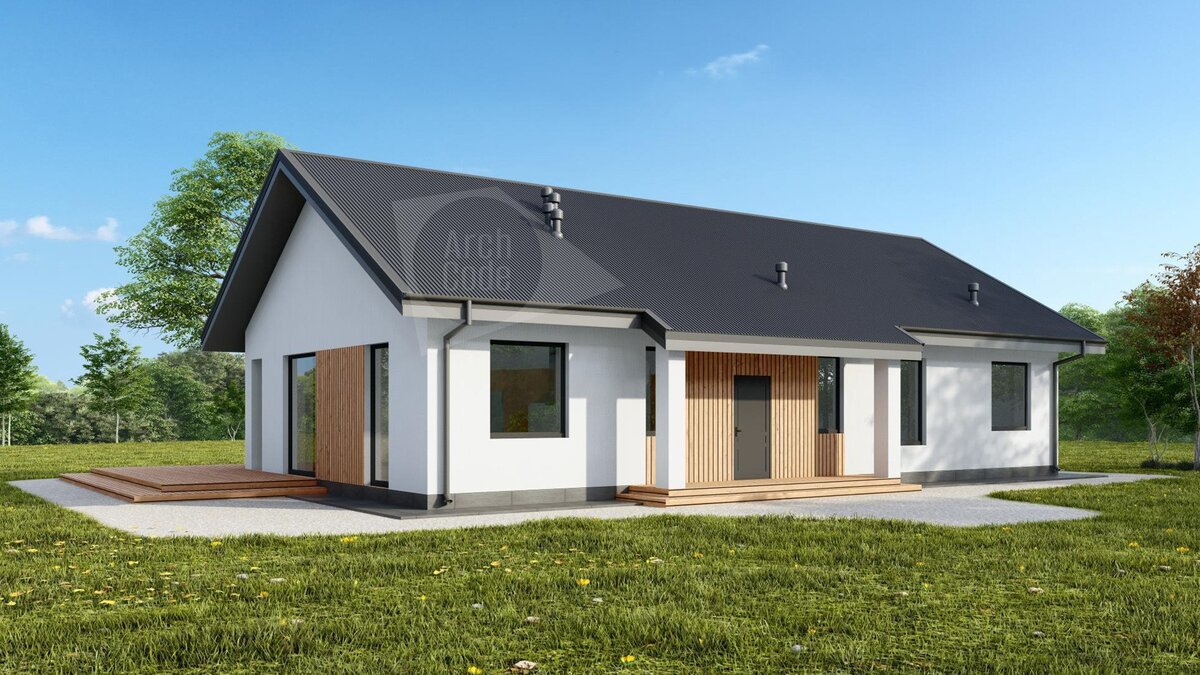 Проект "Ава" представляет собой дом с выразительным внешним видом: просторные полноценные окна, светлые тона фасадной штукатурки, совмещенные с деревянными фасадными панелями, и фальцевая кровля, которая идеально подчеркивает красоту и величественность этого нового дома. Планировка проекта "Ава" идеально подходит для крупной семьи с детьми.