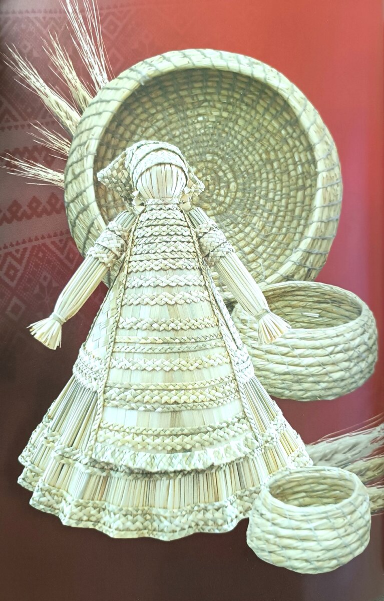 Соломка - теплый солнечный материал, она словно имеет волшебную силу. Плетение из соломы обладает магической притягательностью. Тот, кто хоть раз пробовал переплетать соломинки, навсегда останется страстным ценителем этого удивительного древнего искусства. В повседневной жизни человек научился изготавливать из соломы шляпы, половики, корзины, хозяйственную утварь, игрушки, украшения. Удмуртия богата интересными, талантливыми мастерами, работающими в этой области. Творческие работы Е. А. Чермяниной (Дебесский район) навеяны дыханием старины, знакомят с мифологическими образами, легендами, преданиями, обрядами древних удмуртов. Изучение народного костюма дало мастерице возможность разработать соломенных кукол в национальных костюмах северных удмуртов с использованием текстиля. З. В. Силантьева (Малопургинский район) стояла у истоков возрождения плетения из соломы, на основе старинной "танцующей" куклы создала образ современной удмуртской соломенной куклы. Изделия являются образцовыми для