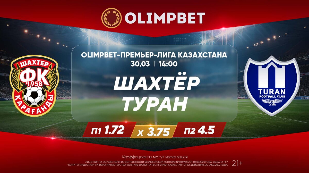 30 марта состоятся две игры третьего тура Olimpbet-Премьер-лиги. В Караганде встретятся «Шахтер» и «Туран» из Туркестана, а «Атырау» на своем поле примет талдыкорганский «Жетысу». «Шахтер» (Караганда) – «Туран» (Туркестан). 30 марта, 14:00 (время Астаны) Третий тур Olimpbet-Премьер-лиги открывает матч команд, которые в своем активе еще не имеют забитых голов. При этом «Туран» смог уже набрать одно очко, сыграв вничью 0:0 с «Кайратом». «Горняки» же с двумя поражениями на старте сезона и абсолютно худшей разницей мячей среди всех команд (0:6) замыкают турнирную таблицу первенства. Правда, обе игры карагандинцы провели на выезде, теперь им впервые в чемпионате предстоит провести домашний матч. Поможет ли поддержка родных трибун «Шахтеру» набрать первые очки или хотя бы забить? В прошлом году эти соперники друг с другом не встречались, так как туркестанцы выступали в Первой лиге. А вот в сезоне-2022 «Шахтер» и «Туран» провели между собой четыре очных матча – по два в чемпионате и розыгрыше