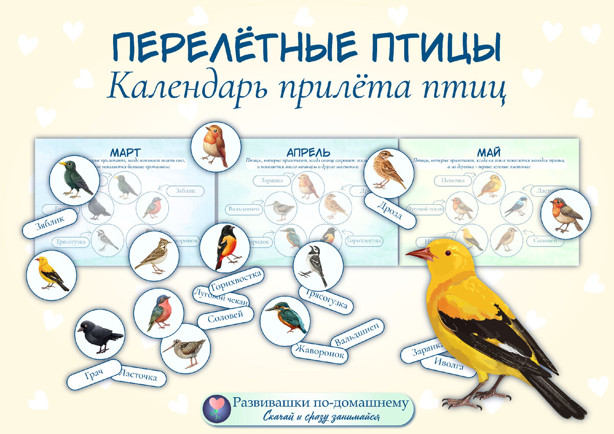 Не могу не поделиться игрой на липучках: весенний календарь прилёта птиц. Пригодится и воспитателям, и для домашних занятий