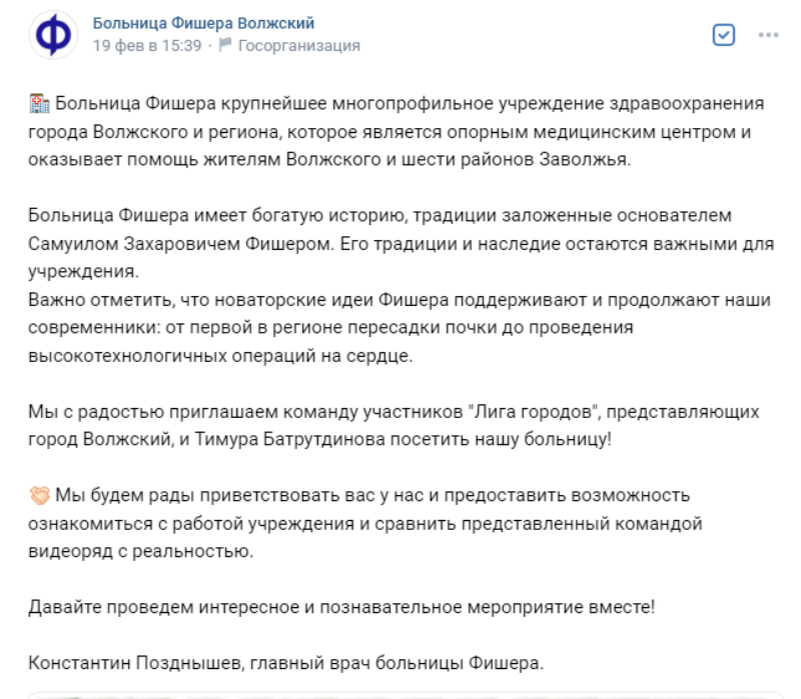 Волжская лига КВН поделилась с редакцией информацией о планах Тимура Батрутдинова по визиту в наш город. После выступления волжской команды КВН «Халатные люди» со вторым монологом о Фишера, в Волжский на выступление пообещал приехать Тимур Батрутдинов. Фото: больница имени Фишера