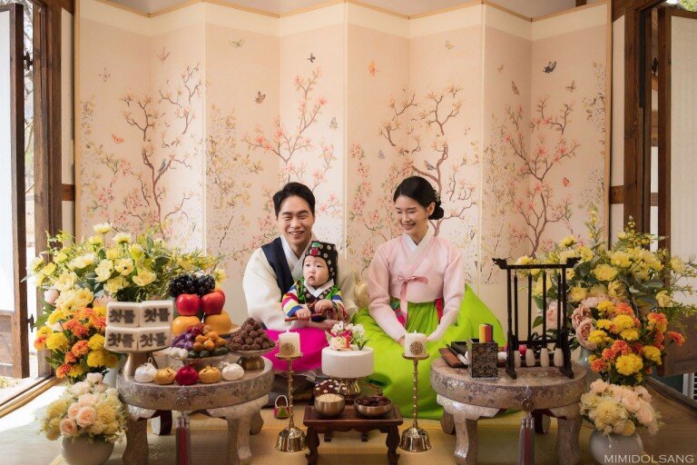 여러분, сегодня мы расскажем вам про корейский праздник 돌잔치. 돌잔치 - традиционное корейское празднование первого дня рождения ребёнка. Раньше, из-за слабо развитой медецины и надоедания, многие дети не доживали и до первого дня рождения, поэтому данный праздник являлся важным событием для всей семьи. По сей день семьи по всей Корее празднуют тольчжанчхи. Они собираются в кругу близких друзей и родных, готовят традиционные блюда и выполняют определенные ритуалы. Обычно празднование проводится в ресторанах, свадебных или банкетных залах. Там же сейчас по современным канонам можно заказать аниматоров и развлекательную программу. Однако есть то, что с древности и по сей день остаётся неизменной частью: родители и ребёнок предстают перед гостями в ханбоках (традиционной корейской одежде). Среди блюд на столах можно найти фрукты, тток (корейский рисовый клецк) и суп из водорослей, который традиционно готовится в Корее на каждый день рождения. Но самым главным событием праздника является риту