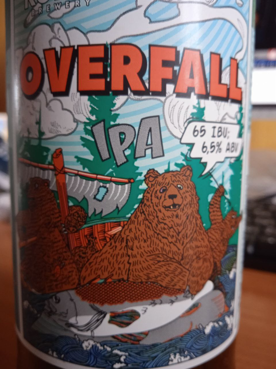 3 медведЯ в одном тазу, Поплыли в водопад в грозу... Всем привет, с вами пивной обзорщик Фёдор Медведеедов именно такие строчки появились в моей голове когда я увидел Overfall от Konix. Весёлая этикетка с отсылкой на ПРЕВЕД МЕДВЕД и рекомендация друга вкупе с ценником в 95 рублей сделали своё дело и я просто вынужден был купить его. Кстати, я купил его по акции, минимум по какому ценнику я его видел это 150 рублей, но сейчас он стоит в районе 220. Многие ругают Konix за то что у него довольно много неудачных сортов. Возможно. Но тут они попали прям в десяточку, по плотности, по горечи, по фруктовости и в плане того как всё это прекрасно сочетается. 65 IBU, на мой взгляд, завышены, но той горечи что присутствует вполне себе хватает для удовлетворения придирчивого горечелюба. Вернусь к своей любимой теме – какое пиво можно посоветовать другу, который кроме лагера из ближайшей разливухи ничего не пробовал. Предложите ему Overfal и объясните что это, ему должно понравиться. Да и себе возь