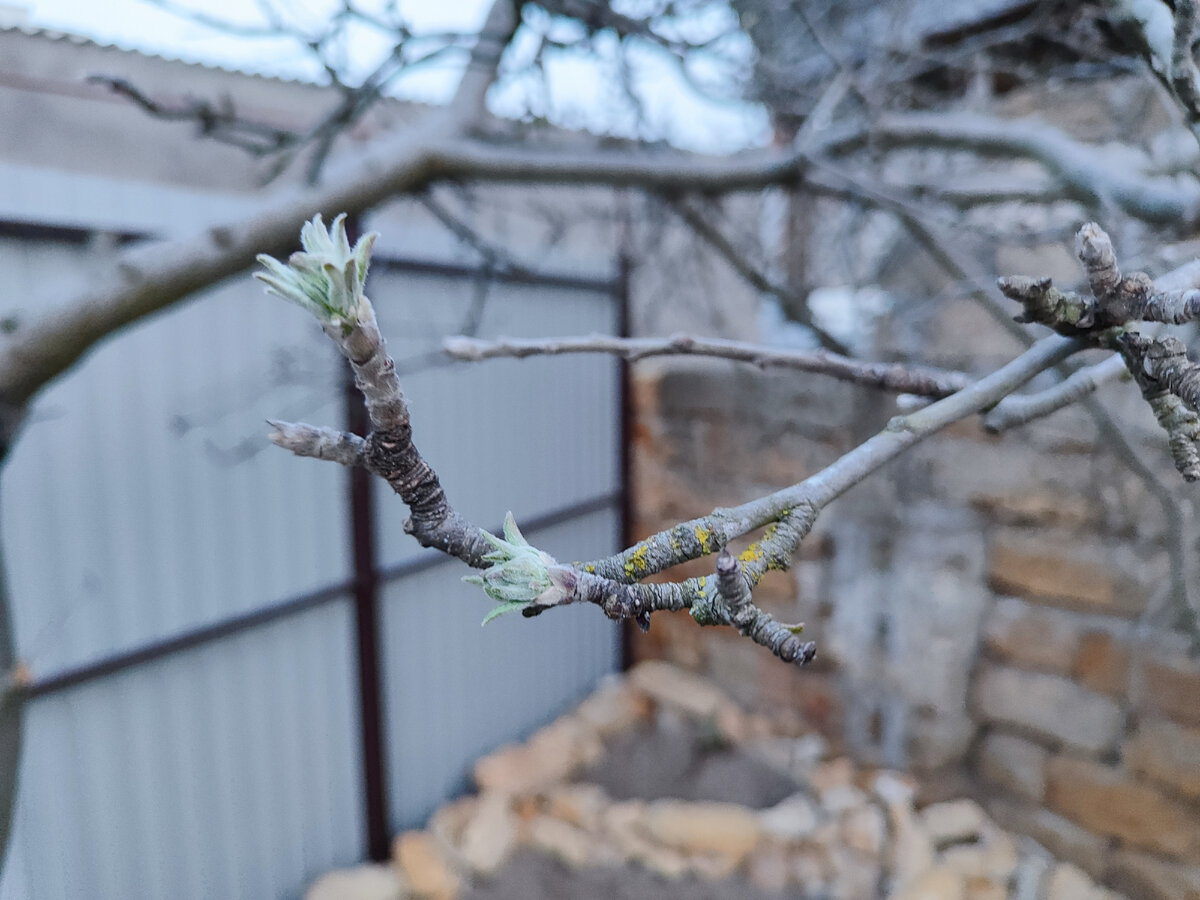 Нет моих сил вечно терпеть этот бардак, и я пытаюсь сделать хоть что-то. Бардак образовался из-за стройки, которой нет конца. Непонятно, что выбрасывать, что еще нужно, также осталось много камней ракушечника от разбора дома и сарая. Но это вы все знаете. А кто не знает, читатайте ниже по ссылкам: Один угол я облагородила, и он стал выглядеть в разы лучше, чем выглядел ранее. Я там даже сделала какие-то посадки. Персик, который я посадила, начал зацветать. Насколько я знаю, ему это не полезно сейчас. Он должен все силы потратить на укоренение. И цветы надо срезать... Там же в этом углу уже просыпается яблоня. Успели мы ее обработать ранее. Кстати, когда рассказывала про наш сад, забыла упомянуть, то у нас еще виноград. Его муж еще месяц назад обрезал и видно, что он уже тоже оживает. В прошлом году удалось поесть своего винограда! Из этого угла я перешла во второй и пыталась навести порядок там. Все что можно было поднять и перенести я разгребла. Остался большой пень и стойка с бетон