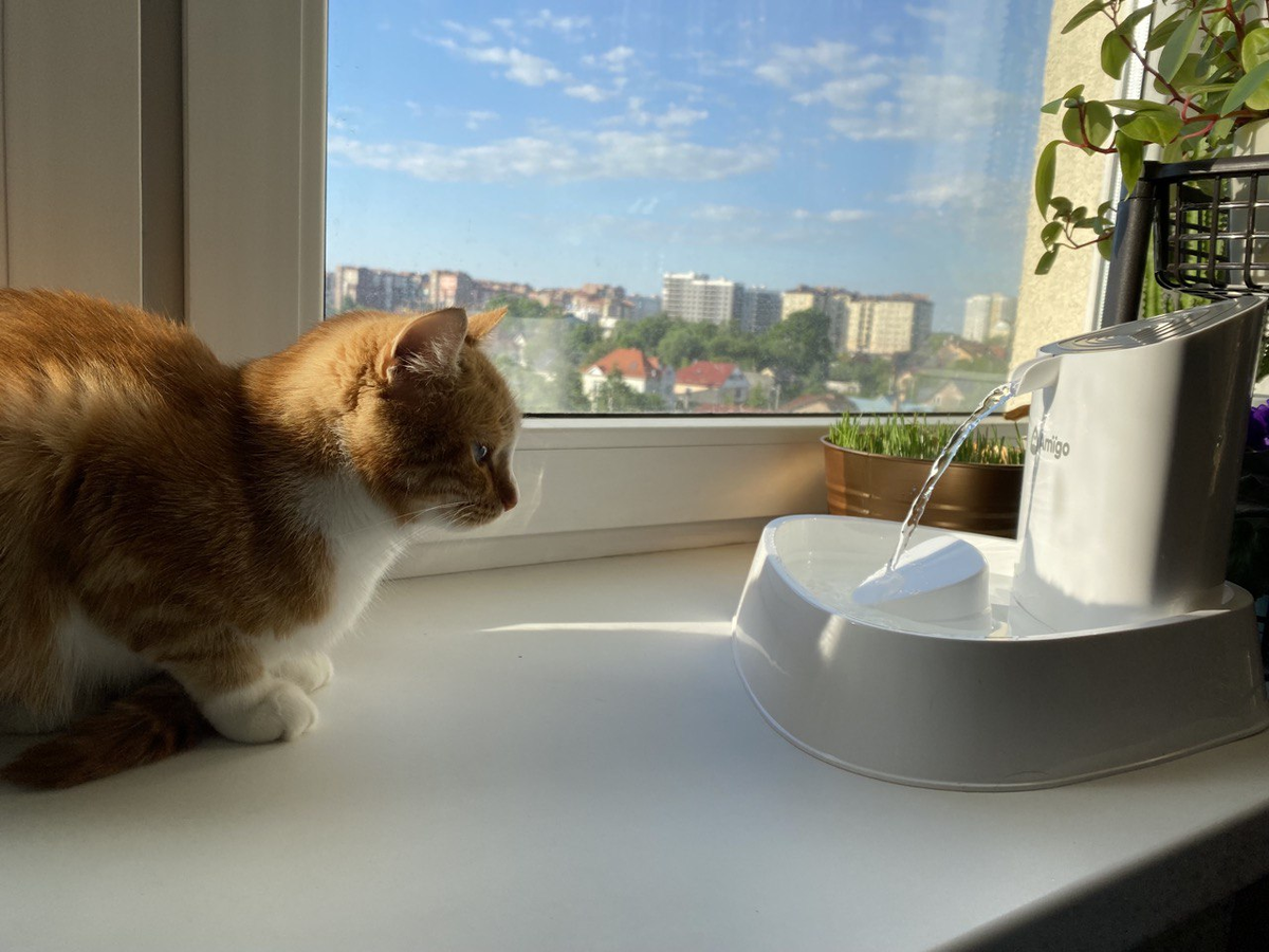 Эффективней автопоилки оказались просто расставленные по квартире большие миски с водой, смешанный с водой влажный корм и переход на натуральное питание.