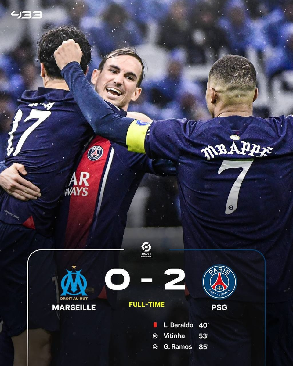В долгожданном матче Лиги 1 между "Марселем" и "Пари Сен-Жермен" болельщиков ждала напряженная и захватывающая игра на " Велодроме". К перерыву счет был 0:0. Обе команды демонстрировали уверенную оборону, но во втором тайме ситуация изменилась. На 53-й минуте Витинья из "Пари Сен-Жермен" забил гол, выведя гостей вперед. Марсель попытался ответить, сделав пару замен, но оборона ПСЖ держалась стойко.