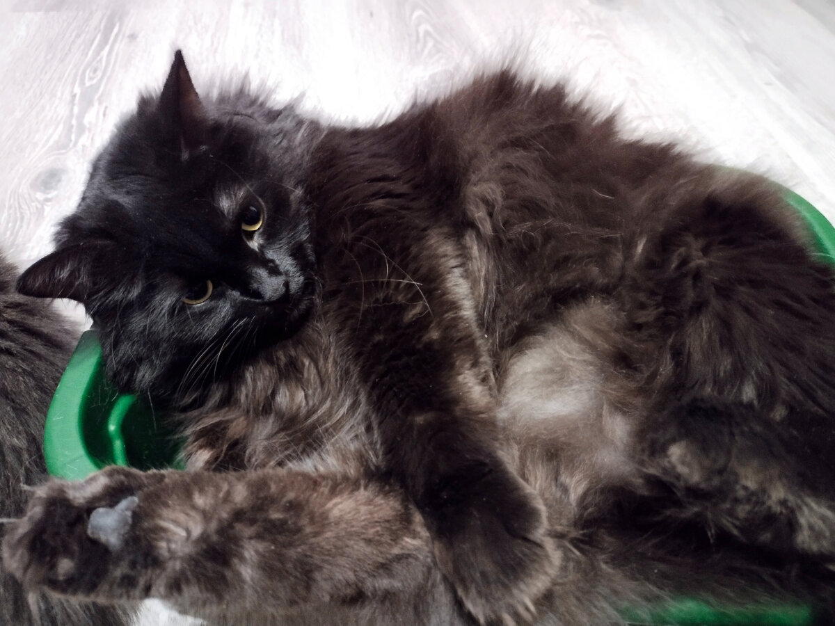 Я потащила за корму, вслед за ней выехала лицевая часть кошки, зубы которой мёртвой хваткой удерживали окорочок