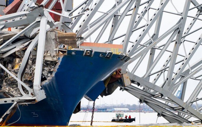 Самым обсуждаемым событием прошлой недели в мировых СМИ стало случившееся 26 марта обрушение моста в городе Балтимор. Мост был назвал именем Фрэнсиса Скотта Ки — прокурора и дипломата начала XIX века, который в свободное от прокурорства и дипломатии время писал безвкусные стишки, один из которых позже был сделан гимном США. Но не в этом суть. Стальной красавец длиной в два с половиной километра сложился после столкновения с его опорой греческого (на деле же — индийского) контейнеровоза Dali, зарегистрированного в Сингапуре и только что вышедшего курсом на Шри-Ланку; три пролёта легли на дно так называемой Внешней бухты Балтимора. Следователи из Сингапура объявили, что причиной всему была потеря управления. Погибли шесть человек, пострадал ещё один, видео со зрелищным обрушением моста (а такие изящные конструкции даже гибнут грациозно) облетело весь мир, после чего все принялись за своё любимое занятие — толкование.
