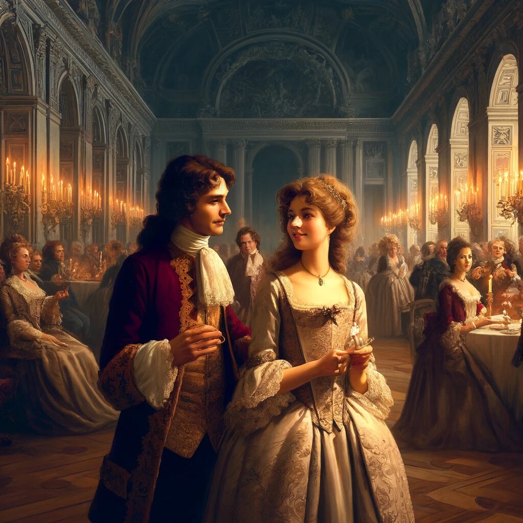 Позже той же ночью, когда залы Версаля заполнились мягким светом свечей, а музыка тихо звучала на заднем плане, Луи нашел возможность подойти к Маргарите. Он предложил ей руку, приглашая к танцу, что было неожиданным даже для самого себя. Маргарита, сначала пораженная его вниманием, приняла приглашение с ноткой неверия в глазах. В этот момент мир вокруг них как будто остановился: ощущение тепла его руки в ее, легкий запах его парфюма, звук его голоса, низкого и успокаивающего, — все это заставило ее сердце биться чаще. Луи, чувствуя, как она дрожит в его объятиях, понял, что эта женщина затронула что-то глубоко скрытое в его душе, чувство, о существовании которого он не подозревал.