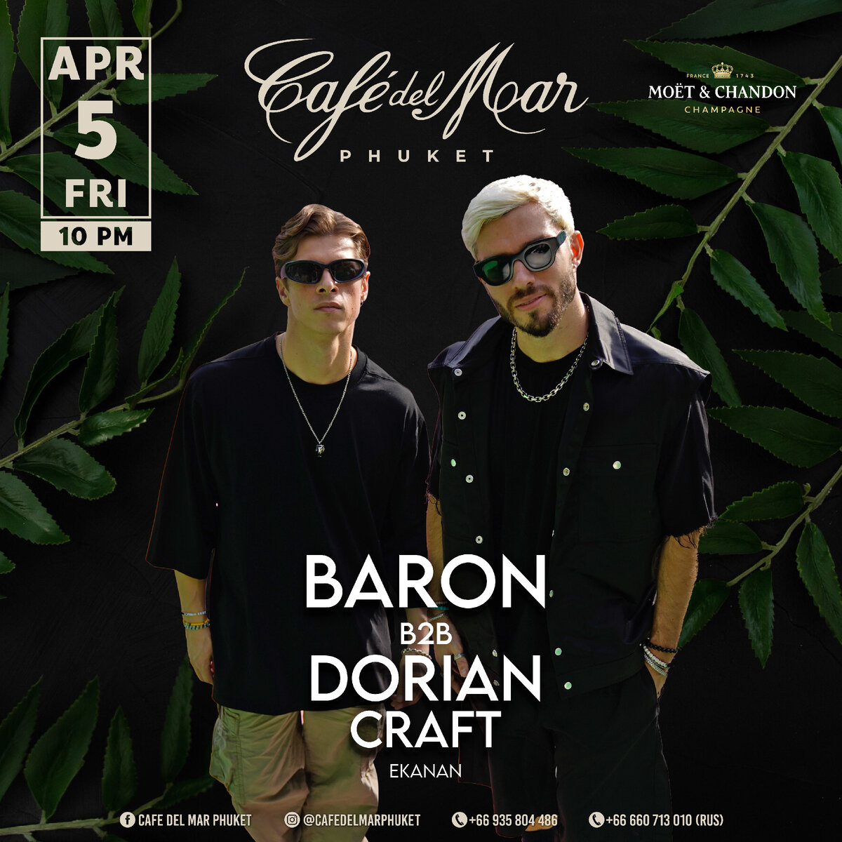 В пятницу, 5 апреля, мы рады представить Magic Carpet takeover от динамичного дуэта BARON (FR) B2B DORIAN CRAFT в Café del Mar на Пхукете, где они проведут вечер афро, органики, мелодий под пульсирующие ритмы и получат незабываемые впечатления. Приготовьтесь танцевать, раскачиваться и раствориться в волшебстве музыки.