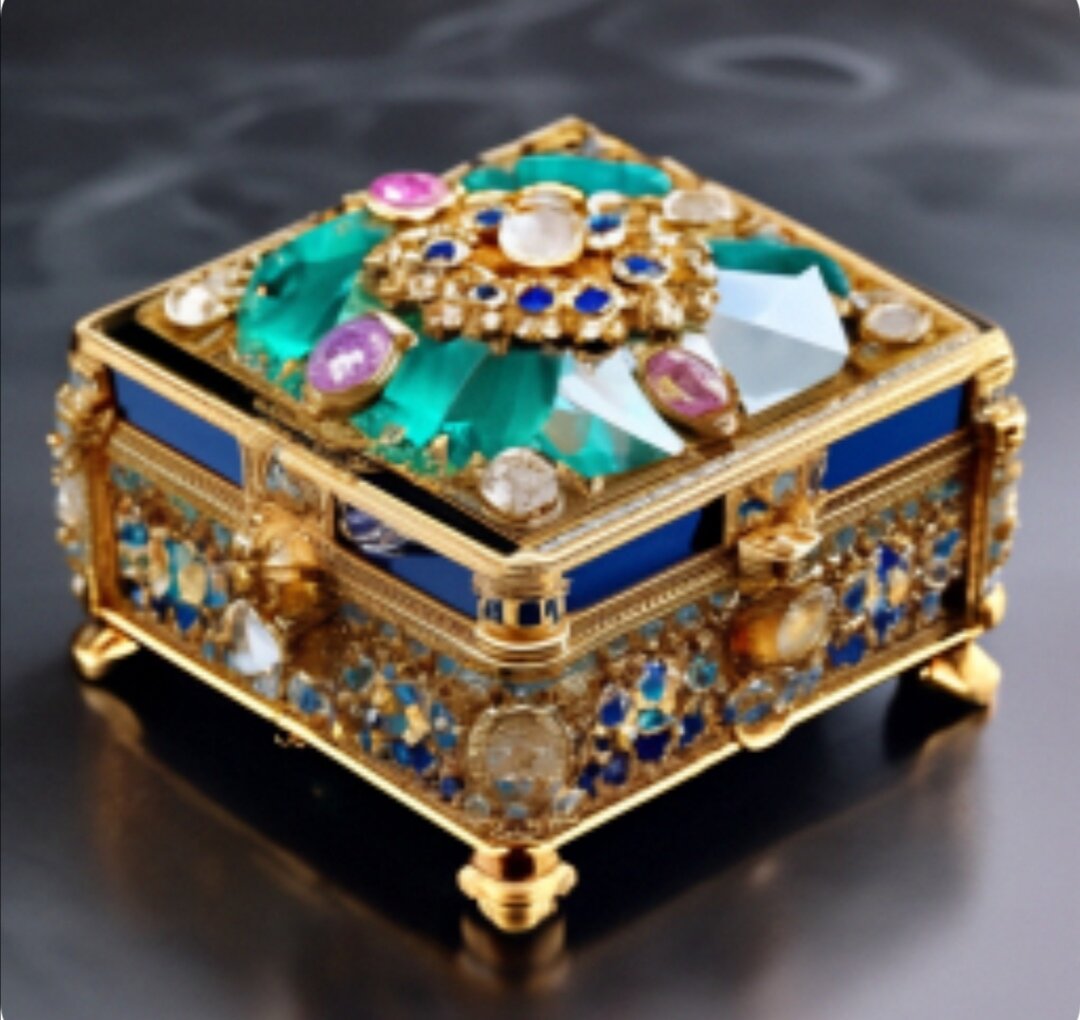 Та щёлкнула заком и откинулась. Девушка увидела маленькую, в четверть ладони, золотую шкатулку, украшенную драгоценными камнями.