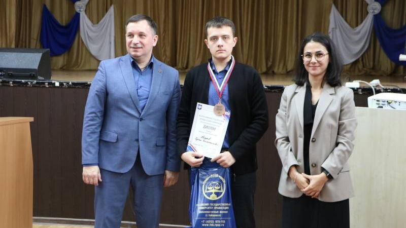 Студенты Восточно-Сибирского государственного университета технологий и управления (ВСГУТУ) стали призерами окружного тура Всероссийской студенческой юридической олимпиады по ДФО. Он проходил в Дальневосточном филиале Российского государственного университета правосудия в Хабаровске 23 марта. В этом состязании участвовали более 50 лучших студентов юридических вузов Дальнего Востока. «Окружной тур ВСЮО-2024 в Дальневосточном федеральном округе прошел с большим успехом. Все студенты показали блестящий уровень знаний в различных областях права», - отметили организаторы окружного тура. Олимпиадные задания включали теоретические вопросы и решение задач. ВСГУТУ представили победители вузовского тура по номинациям «Гражданское право», «Уголовное право», «Конституционное право»: Дмитрий Буш, Дарья Протасова, Сергей Петров. Ребята показали высокий уровень знаний и достойно выступили. По результатам конкурса в номинации «Конституционное право» Сергей Петров занял третье место. В конкурсе на знан