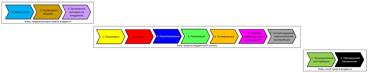 - этапы, предшествующие проекту внедрения;