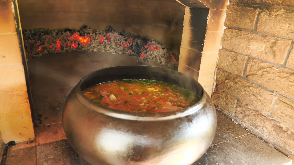 Всем привет. Щи для русской кухни это не просто блюдо, щи это что то большее,особенно если Вы их приготовили правильно. Сегодня готовим щи в чугунке в дровяной печи. Поехали! Для приготовления нам потребуется: Телятина грудинка 2кг Картофель Квашеная капуста Свежая капуста Помидоры Лук Морковь Чеснок Петрушка Перец чили Соль Перец Грудинку нарезаем крупно и кладем на дно чугунка. У меня чугунок на 9 литров. Сверху мяса идет лук нарезанный на полукольца, далее тертая морковь. Далее в чугунок отправляем нашинкованную свежую капусту и квашенную капусту с рассолом. Соотношение 50 на 50. Томаты натираем на крупной терке, на мелкой натираем чеснок. Отправляем в чугунок, туда же укроп зонтики и один острый перец чили. Щи солим и перчим. Наливаем воду и отправляем томиться в печь часа на 3. Картофель нарезаем крупно, наливаем 200 мл воды и отправляю на противни запекаться в печь минут на 30(минут 20 накрываю фольгой и 10 без). Рекомендую приготовить к нашему блюду пирожки с картошко